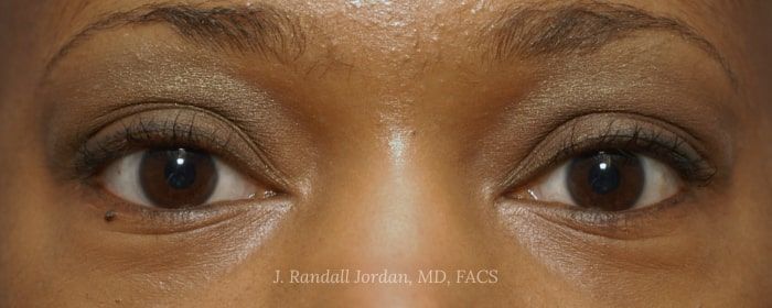 Before- This young lady was unhappy with the bulges under her eyes and desired improvement. After discussion of the options of filler injections versus a transconjunctival blepharoplasty with fat removal, she chose the surgical option because it was longer lasting.