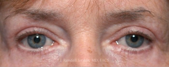 Before- This patient felt that her eyes looked tired and sad. We recommended a brow lift and upper blepharoplasty.