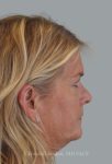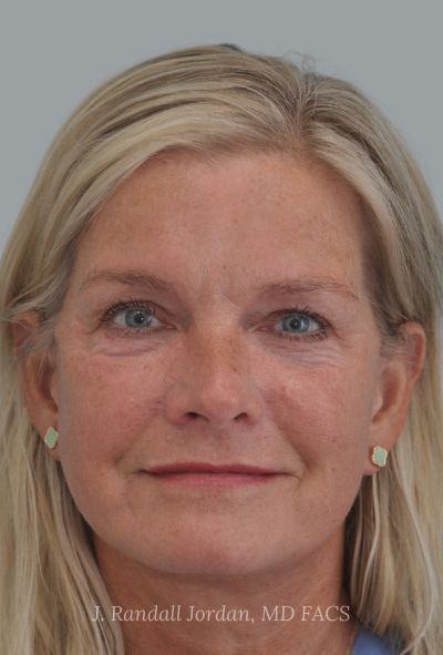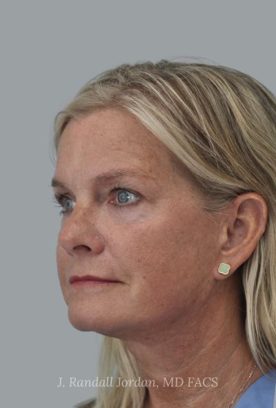 After: She was very pleased and happy that she did both procedures, as she felt that together they helped her regain a more rested, happy appearance! Her total facial rejuvenation also included upper blepharoplasty and an under-eye chemical peel.