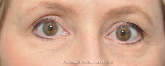 Pre injection: This patient was troubled by the bags and wrinkles under her eyes but did not