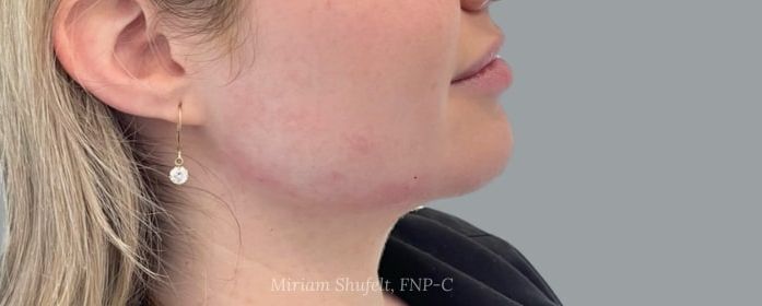 Before: This 21-year-old female was interested in creating more definition along her jawlines. After researching possible solutions, she chose to come to Faces for treatment.