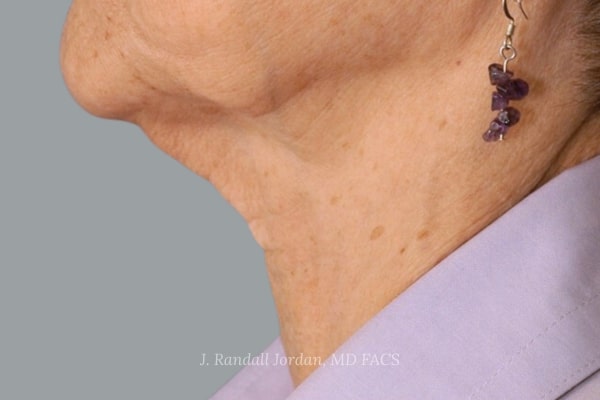 Before: This lady wanted to have the aging skin under her neck removed without having to undergo a facelift. It was suggested in consultation that a direct cervicoplasty would address her concern.